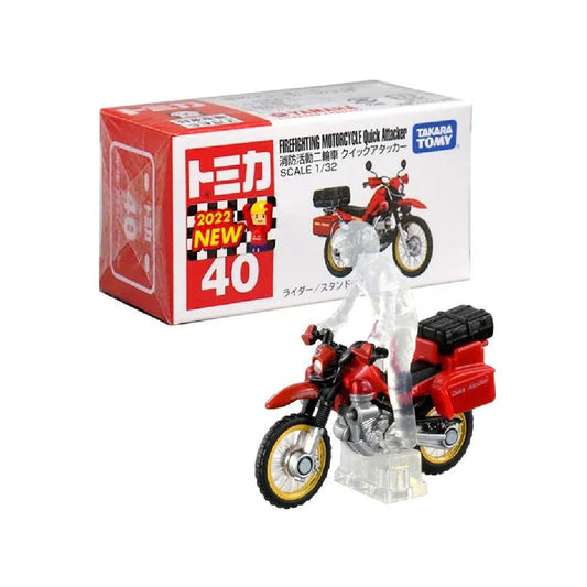 TOMICA 40 Fire Fighting Motorcycle Quick Attacker- TAKARA TOMY -Diecast Scale Model Car 1/32